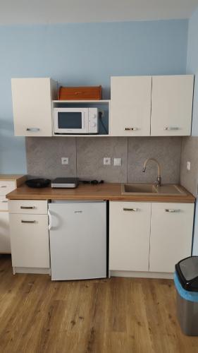 Některé ubytovací jednotky mají také kuchyň s lednicí a mikrovlnnou troubou.