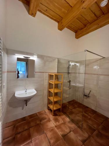 Pokoje v ubytování Dvůr Nové Zámky mají vlastní koupelnu a k dispozici je v nich také bezplatné Wi-Fi.