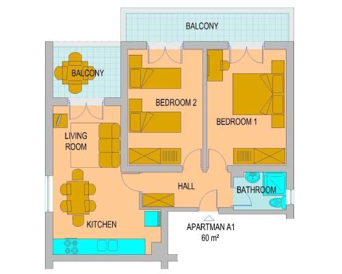 Všechny ubytovací jednotky mají vlastní koupelnu, sprchu, klimatizaci, TV s plochou obrazovkou a lednici. Některé ubytovací jednotky mají terasu a/nebo balkon s výhledem na moře nebo do zahrady.