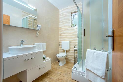 K dispozici je vlastní koupelna s kompletním vybavením včetně sprchy a fénu.