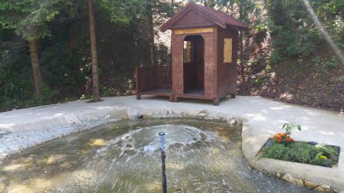 Dva přírodní potoky s pitnou vodou a spoustou ryb a krabů protékají zahradou, která má také dětské hřiště, terasu a gril.