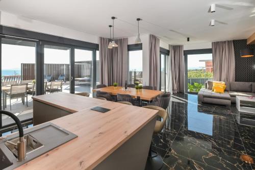 Tato vila má 5 ložnice, 6 koupelny, ložní prádlo, ručníky, TV s plochou obrazovkou, jídelní část a kuchyň s kompletním vybavením. Může se pochlubit také terasou s výhledem na moře. Tato vila s klimatizací nabízí také posezení, pračku a koupelnu s bezplatnými toaletními potřebami.