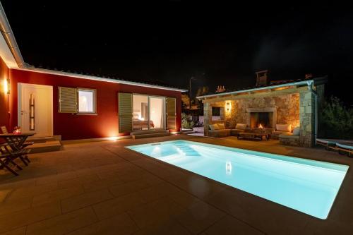 Red House Trget with Swimming Pool, Sauna and Jacuzzi nabízí venkovní bazén a bezplatné Wi-Fi. Pláž Get se nachází 1,6 km odtud. Tato vila poskytuje soukromý bazén, zahradu, neplacené soukromé parkoviště a možnost vlastního stravování.