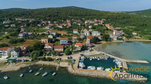 Apartmani Kovačić se nachází v destinaci Kraj a nabízí ubytování s zahradou, neplaceným soukromým parkovištěm, terasou a vybavením pro grilování. Pláž Tratica je 500 metrů daleko. Všechny pokoje mají balkon.
