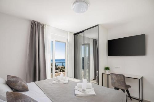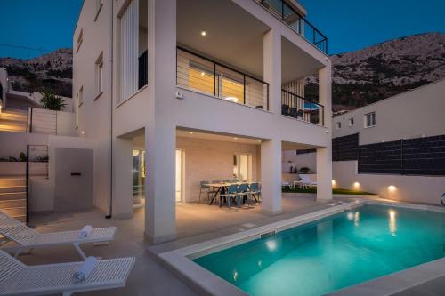 Modern Villa Maris - with heated pool & sea view se nachází v destinaci Brela a nabízí zahradu, soukromý bazén a výhled na moře. Toto ubytování nabízí terasu, neplacené soukromé parkoviště a bezplatné Wi-Fi. Můžete si zde také zahrát stolní tenis.