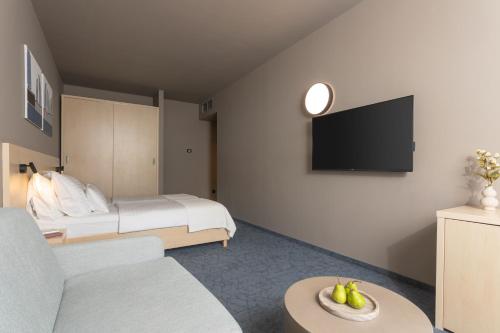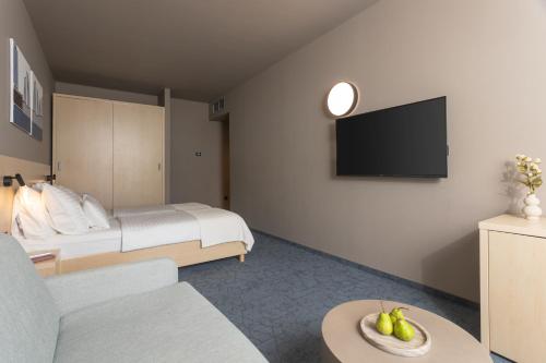 Adria má moderní pokoje s balkonem, posezením, satelitní TV a minibarem.