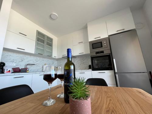 Apartman - Kera Nin se může pochlubit výhledem na moře a nabízí ubytování s balkonem a kávovarem. Pláž Zukve se nachází přibližně 1,2 km odtud. Ubytování poskytuje terasu a neplacené soukromé parkoviště. Pláž Prodorica se nachází 20 metrů odtud.