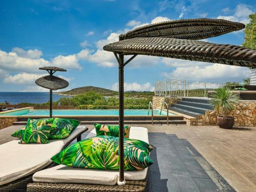 Tato vila s klimatizací má 4 ložnice, 4 koupelny s bezplatnými toaletními potřebami a fénem a posezení. Tato vila má satelitní TV, kuchyň s dobrým vybavením včetně lednice, myčky nádobí a trouby, koupelnu a terasu s výhledem na moře.