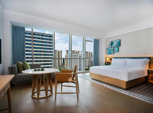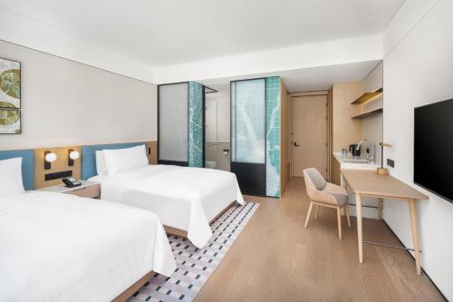 Všechny možnosti v ubytování Element Qingdao jsou vybavené varnou konvicí. Zařízení pokojů zahrnuje klimatizaci, psací stůl a TV s plochou obrazovkou a některé pokoje mají patio. Všechny pokoje v ubytování Element Qingdao mají v ceně ložní prádlo a ručníky.