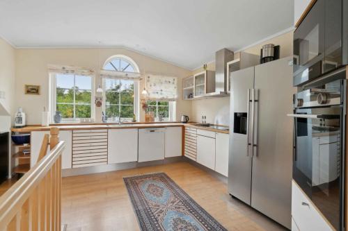 Tento prázdninový dům má 4 ložnice, TV s plochou obrazovkou a kuchyň s lednicí a myčkou nádobí.