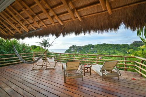 Každá vila má klimatizované ložnice, velký obývací pokoj a verandu s výhledem. Kuchyň je vybavena sporákem, troubou, rychlovarnou konvicí, lednicí a kávovarem.