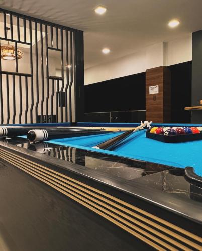 For guests with children, the villa provides kids pool. Guests can also relax in the shared lounge area.
