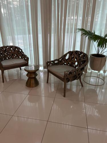 Všechny pokoje v ubytování Condotel in Abreeza Ayala Mall mají klimatizaci, psací stůl, TV s plochou obrazovkou, vlastní koupelnu, ložní prádlo, ručníky a patio s výhledem na město. Vlastní koupelna je vybavená bidetem, bezplatnými toaletními potřebami a fénem. Všechny pokoje jsou vybavené lednicí.