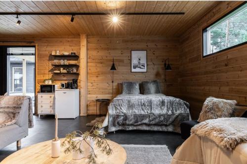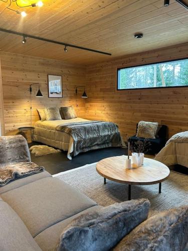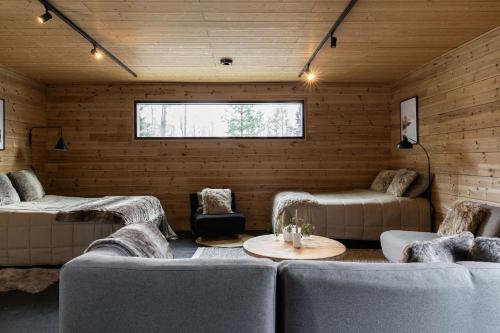 Log cabin of peace nabízí různá wellness zařízení včetně sauny a vířivky.