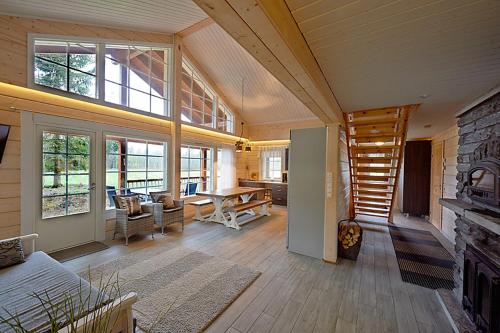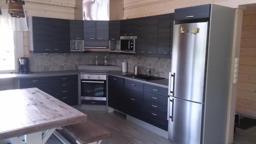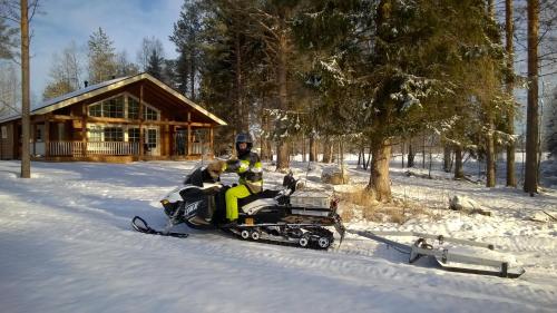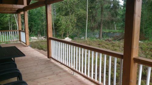 Koskikara Cottage nabízí terasu, venkovní gril, soukromý úsek pláže a možnost dojet až před vchod na lyžích.