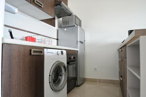 Tento apartmán má 1 ložnici, obývací prostor, kuchyň s kompletním vybavením včetně lednice a trouby a 1 koupelnu. Koupelna je vybavená sprchou a fénem.