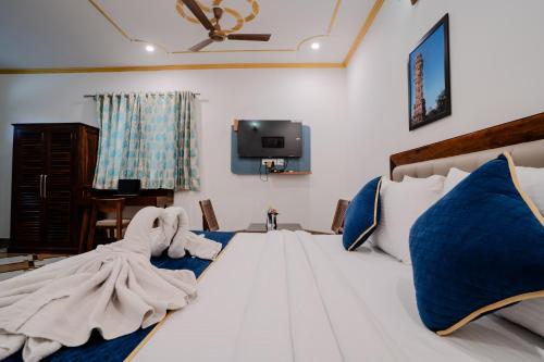 Personál nepřetržitě otevřené recepce hovoří anglicky, hindsky a dalšími jazyky.