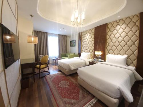 Sarovar Premiere Srinagar se nachází v destinaci Šrínagar v regionu Jammu & Kashmir a nabízí terasu. Chrám Shankaracharya Mandir se nachází 9 km daleko a Hazratbal Mosque 9 km. Tento hotel s 5 hvězdičkami nabízí pokojovou službu, nepřetržitě otevřenou recepci a bezplatné Wi-Fi. Na místě je k dispozici restaurace s jídly indické kuchyně a také neplacené soukromé parkoviště.