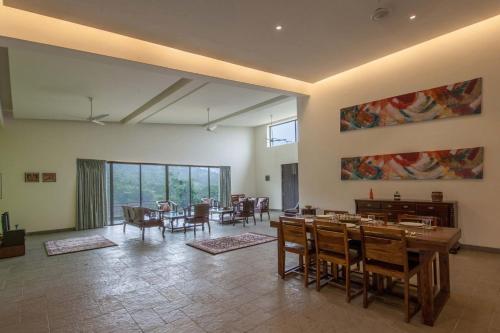 StayVista's Shivom Villa 8 - A Serene Escape with Views of the Valley and Lake se může pochlubit výhledem na hory a nabízí venkovní bazén, sdílený lounge a terasu. Lonavala železniční stanice se nachází přibližně 8,8 km odtud. Tato vila má soukromý bazén, zahradu, neplacené soukromé parkoviště a možnost vlastního stravování.