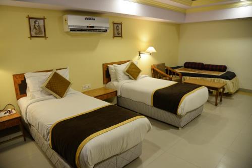 Všechny pokoje jsou vybavené psacím stolem. Rajputana Palace poskytuje pokoje vybavené TV s plochou obrazovkou a bezplatnými toaletními potřebami.