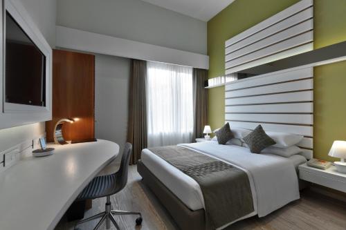 Vkusně zařízené elegantní pokoje mají moderní interiér a balkon s výhledem na město. Všechny jsou dobře vybavené a mají satelitní TV s plochou obrazovkou, psací stůl, bezpečnostní schránku a minibar. Ve vlastní koupelně najdete sprchu a bezplatné toaletní potřeby.