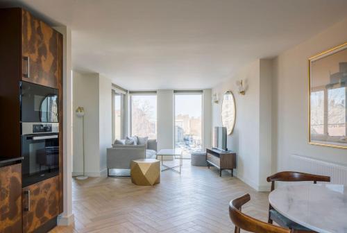 The apartment provides guests with a balcony, city views, a seating area, a flat-screen TV, a fully equipped kitchen with a dishwasher and an oven, and a private bathroom with bath and a hair dryer. A microwave, a toaster and fridge are also available, as well as a kettle. At the apartment complex, units include bed linen and towels.