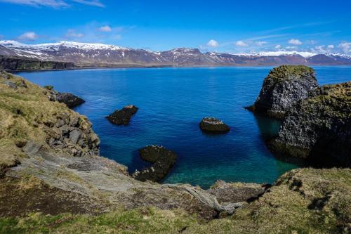 Kleifar: Ocean View Apartment se nachází v destinaci Hellissandur v oblasti Vesturland a poskytuje balkon a výhled do zahrady. V tomto apartmánu s výhledem na moře a výhledem na hory je dostupné bezplatné Wi-Fi.