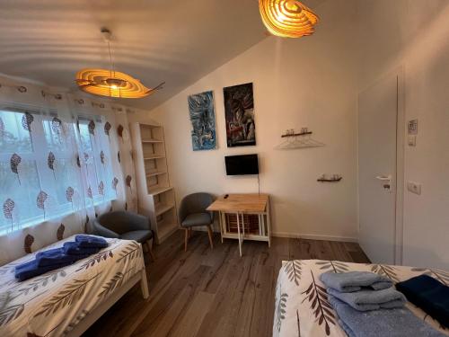 Tento apartmán má 2 ložnice, kuchyňský kout s kompletním vybavením včetně lednice a mikrovlnné trouby a 1 koupelnu s sprchou. Tento apartmán nabízí také TV s plochou obrazovkou a koupelnu s fénem.