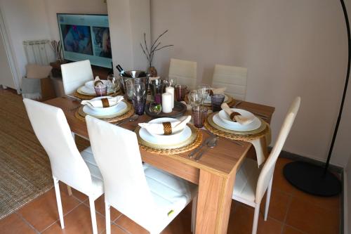 Prázdninový dům má 2 ložnice, 2 koupelny, ložní prádlo, ručníky, TV s plochou obrazovkou se satelitními programy, kuchyň s kompletním vybavením a terasu s výhledem na město. Tento prázdninový dům s klimatizací poskytuje také posezení, pračku a koupelnu s bezplatnými toaletními potřebami.