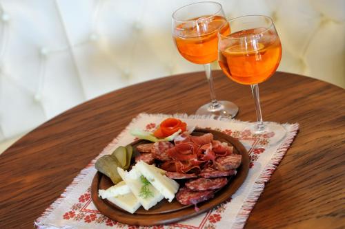 Snídaně formou bufetu zahrnuje sladká i slaná jídla a zahrnuje domácí moučníky, briošky, koláče, marmeládu, ovocný salát, uzeniny a sýry. Teplé nápoje jsou k dispozici z kávovaru.