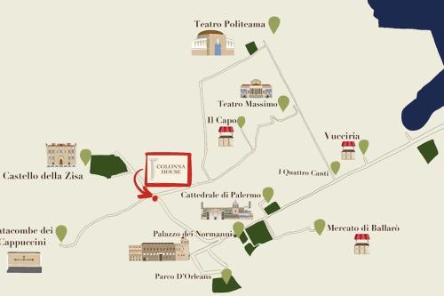 Colonna House Casa tra la Zisa e la Cattedrale se nachází v destinaci Palermo a nabízí ubytování s balkonem a bezplatným Wi-Fi. Katedrála Nanebevzetí Panny Marie se nachází 1 km daleko, Fontana Pretoria 1,6 km a Divadlo Massimo 1,4 km. Stazione di Palermo Notarbartolo se nachází 2,7 km od tohoto apartmánu a Church of the Gesu 1,7 km.