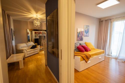 Tento apartmán s klimatizací má 2 ložnice, obývací prostor, kuchyň s kompletním vybavením včetně lednice a myčky nádobí a 1 koupelnu. Koupelna je vybavená bidetem a fénem. K dispozici jsou i ručníky a ložní prádlo.