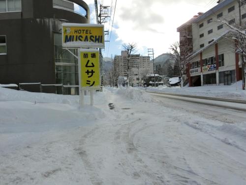 Naeba Musashi se nachází 10 minut chůze od lyžařského střediska Naeba a nabízí jednoduché ubytování v japonském stylu a veřejné lázně. K dispozici je bezplatné parkoviště a na recepci si hosté mohou zakoupit zlevněné skipasy.