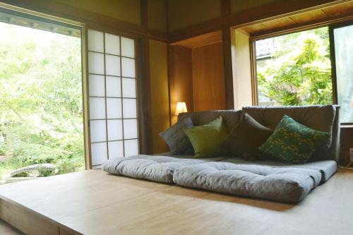 野窓 Nomadノマド Tsuwano GuestHouse & Cafe Lounge se nachází v destinaci Tsuwano a nabízí ubytování s zahradou, soukromým parkovištěm, sdíleným loungem a terasou. Svatyně Taikodani Inari je 1 km daleko. Tento penzion nabízí bar a pokoje s klimatizací a s sdílenou koupelnou. K dispozici je bezplatné Wi-Fi ve všech prostorách a Tsuwano Joushi se nachází 1,9 km daleko.