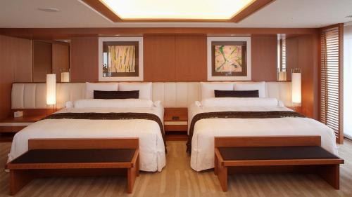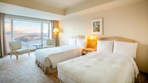 Surrounded by lush greenery, Windsor Hotel Toya Resort boasts a golf course and tennis courts. Spacious rooms come with sea or lake views, while Bloom Spa Toya offers hot spring baths, massage treatments and fitness facilities.