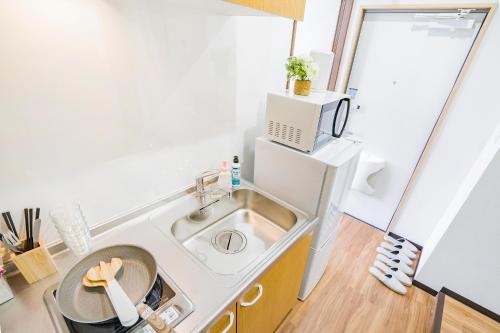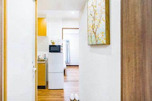 10min walk to Shinjuku SoE2 má 2 ložnice s klimatizací, jídelní část a kuchyň s kompletním vybavením včetně lednice.