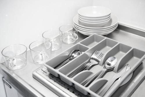 Tento apartmán s klimatizací má 1 ložnici, kuchyň s kompletním vybavením včetně lednice a mikrovlnné trouby a 1 koupelnu. Koupelna je vybavená sprchou, pračkou, bezplatnými toaletními potřebami a fénem.