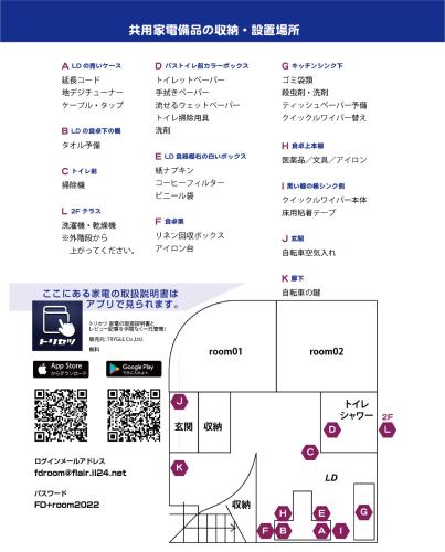 V ubytování 香川のゲストハウスFDroom mají všechny pokoje šatní skříň. Sdílená koupelna je vybavená sprchou a fénem. Všechny ubytovací jednotky zahrnují ložní prádlo.