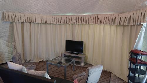 Luxusní stan má TV s plochou obrazovkou. V kuchyňském koutě najdete lednici, mikrovlnnou troubu a varnou desku a v koupelně je sprcha, bezplatné toaletní potřeby a fén.