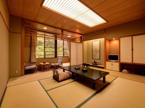 Všechny pokoje v ubytování 蓬平温泉 蓬莱館 福引屋 jsou vybavené TV s plochou obrazovkou. Všechny pokoje v ubytování 蓬平温泉 蓬莱館 福引屋 mají v ceně ložní prádlo a ručníky.