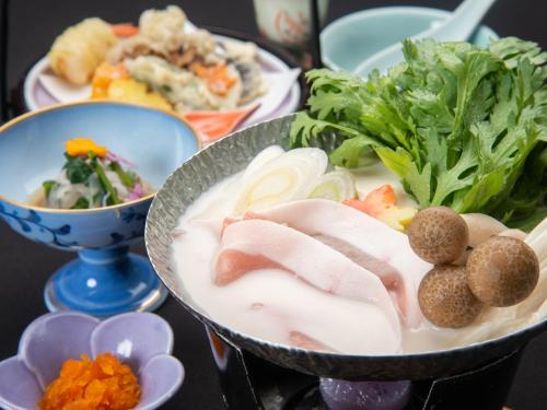 V ubytování 蓬平温泉 蓬莱館 福引屋 si můžete pochutnat na asijské snídani.