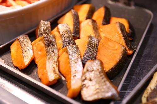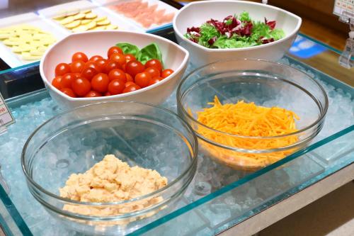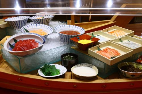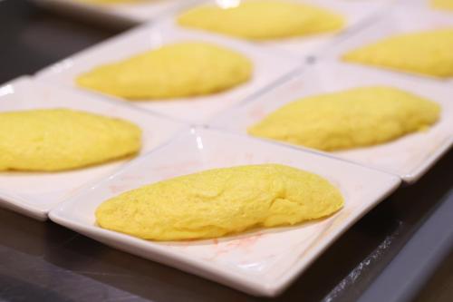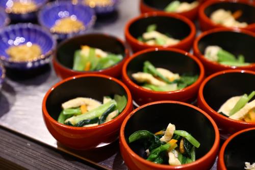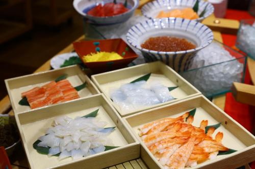 Každé ráno se v ubytování Oyado Tsukiyo no Usagi podává snídaně formou bufetu.