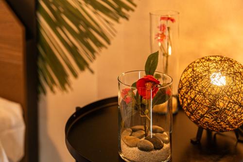 Všechny možnosti jsou vybaveny klimatizací, lednicí, mikrovlnnou troubou, varnou konvicí, bidetem, bezplatnými toaletními potřebami a psacím stolem. Všichni hosté mají k dispozici bezplatné Wi-Fi a vlastní koupelnu s fénem a v některých pokojích je také herní konzole. Všechny pokoje v ubytování 花の宿 別府 mají v ceně ložní prádlo a ručníky.