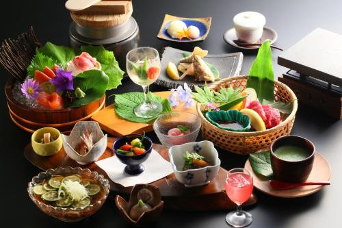 Tento hotel nabízí hostům tradiční japonská jídla v soukromé jídelně. Večeře zahrnuje slané kalamáry, vařený kapr a hovězí steak.