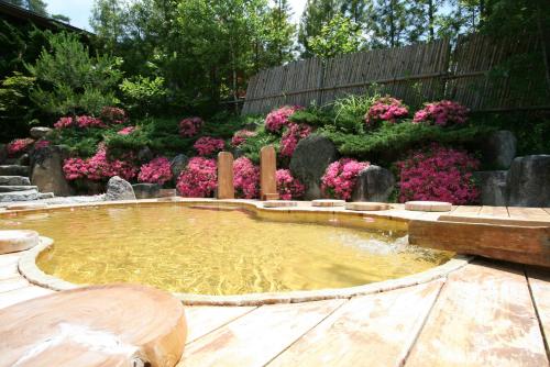 Hosté se mohou vykoupat v 6 různých typech krytých a venkovních termálních lázní. V salonku je zdarma k dispozici samoobslužná káva a čaj.