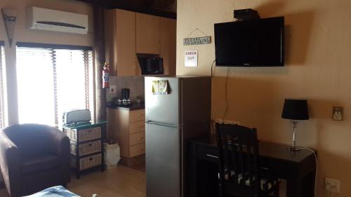 K dispozici je také lednice, mikrovlnná trouba a varná konvice.