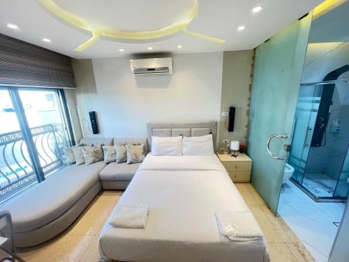 Tento apartmán s klimatizací má 1 ložnici, obývací prostor, kuchyňský kout s kompletním vybavením a 1 koupelnu. Apartmán má také koupelnu.