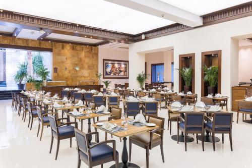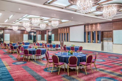 Guests can unwind at the Black Iris Rooftop with a delightful cocktail, taking in a stunning 270 degree view during sunset. Alternatively, they can enjoy mouthwatering steaks at V Lounge & Restaurant or have informal coffee meetings at Jasmine Lobby Lounge and Café Vienna. The dedicated staff ensures a seamless business experience, backed by a 24 hour Business Center.