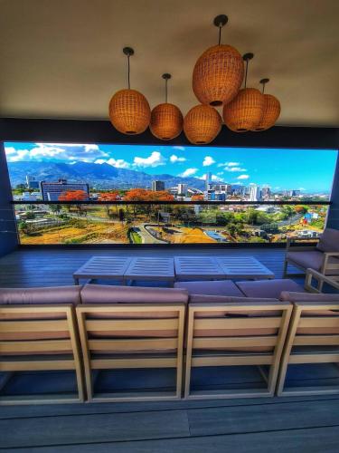 Top-floor overlooking uptown with AC & parking se nachází v San José a nabízí venkovní bazén, fitness centrum, zahradu a ubytování s bezplatným Wi-Fi a výhledem na město. Ubytování poskytuje terasu a neplacené soukromé parkoviště. Národní park Poas se nachází 46 km odtud.
