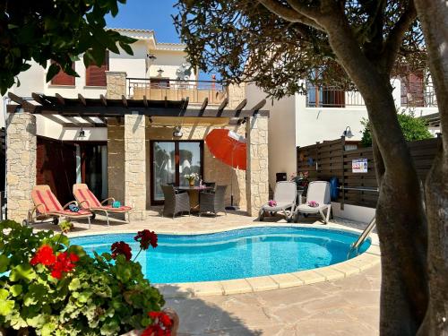 'Villa Xenia' HG25 - Relax and Enjoy the Golf Resort se může pochlubit výhledem na hory a poskytuje ubytování s venkovním bazénem a balkonem. Aphrodite Hills Golf se nachází přibližně 400 metrů odtud. Tato vila poskytuje soukromý bazén, zahradu, venkovní gril, bezplatné Wi-Fi, neplacené soukromé parkoviště a možnost vlastního stravování.